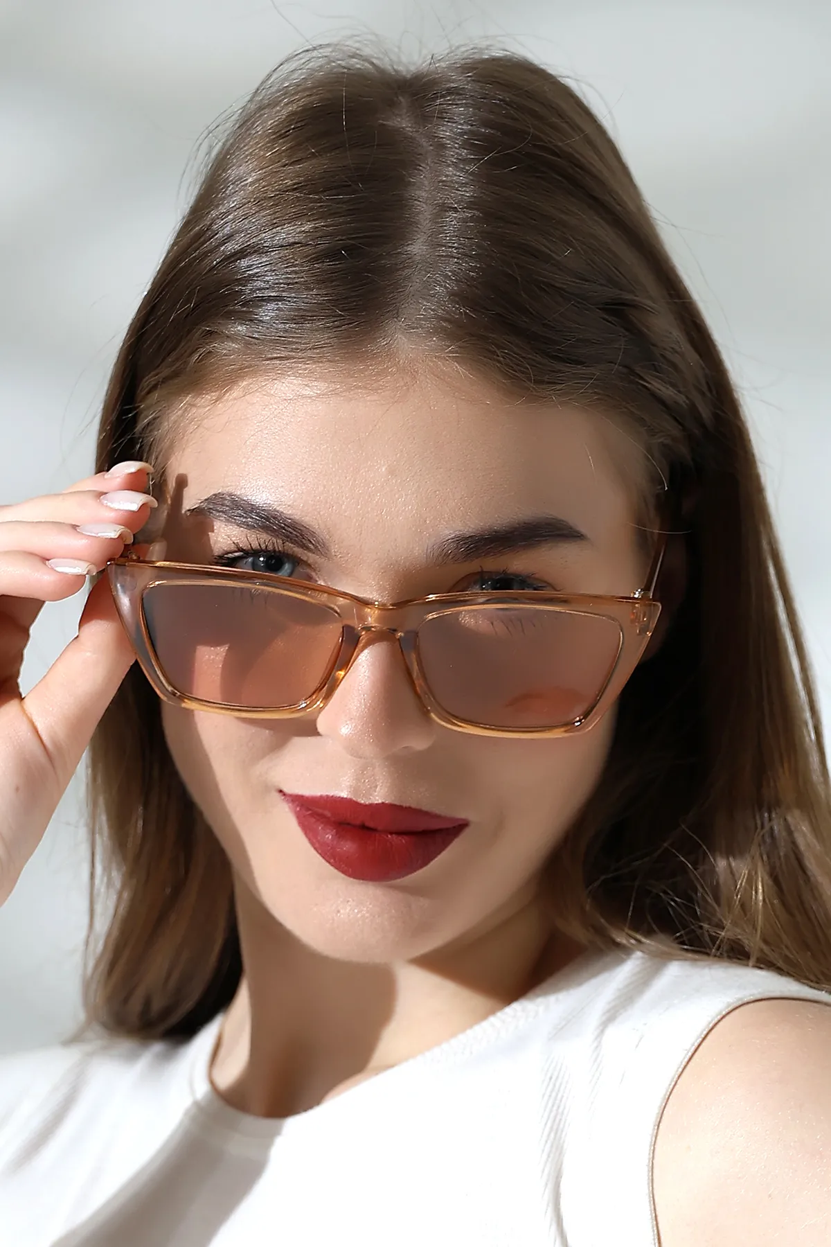 Kadın Bal Rengi Cat Eyes Degrade Cam Güneş Gözlüğü 23006 C4