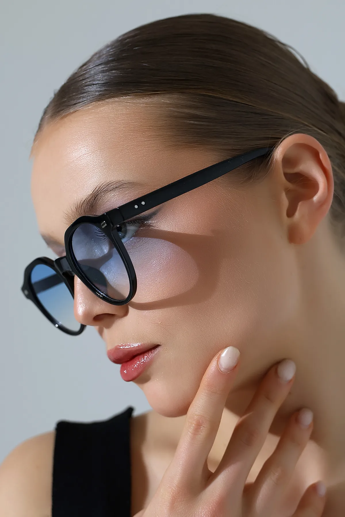Kadın Aksesuarlı Oval Mavi Cam Güneş Gözlüğü 23007 c2 M