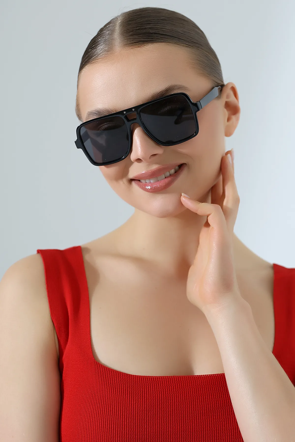 Kadın Retro Aksesuarlı Siyah Güneş Gözlüğü 23011 C2