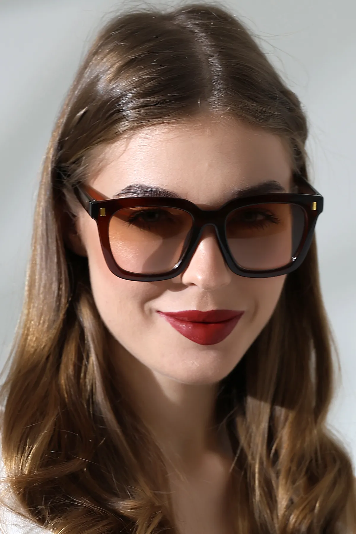 Kadın Kahverengi Kare Açık Renk Cam Güneş Gözlüğü 23013 C3 A