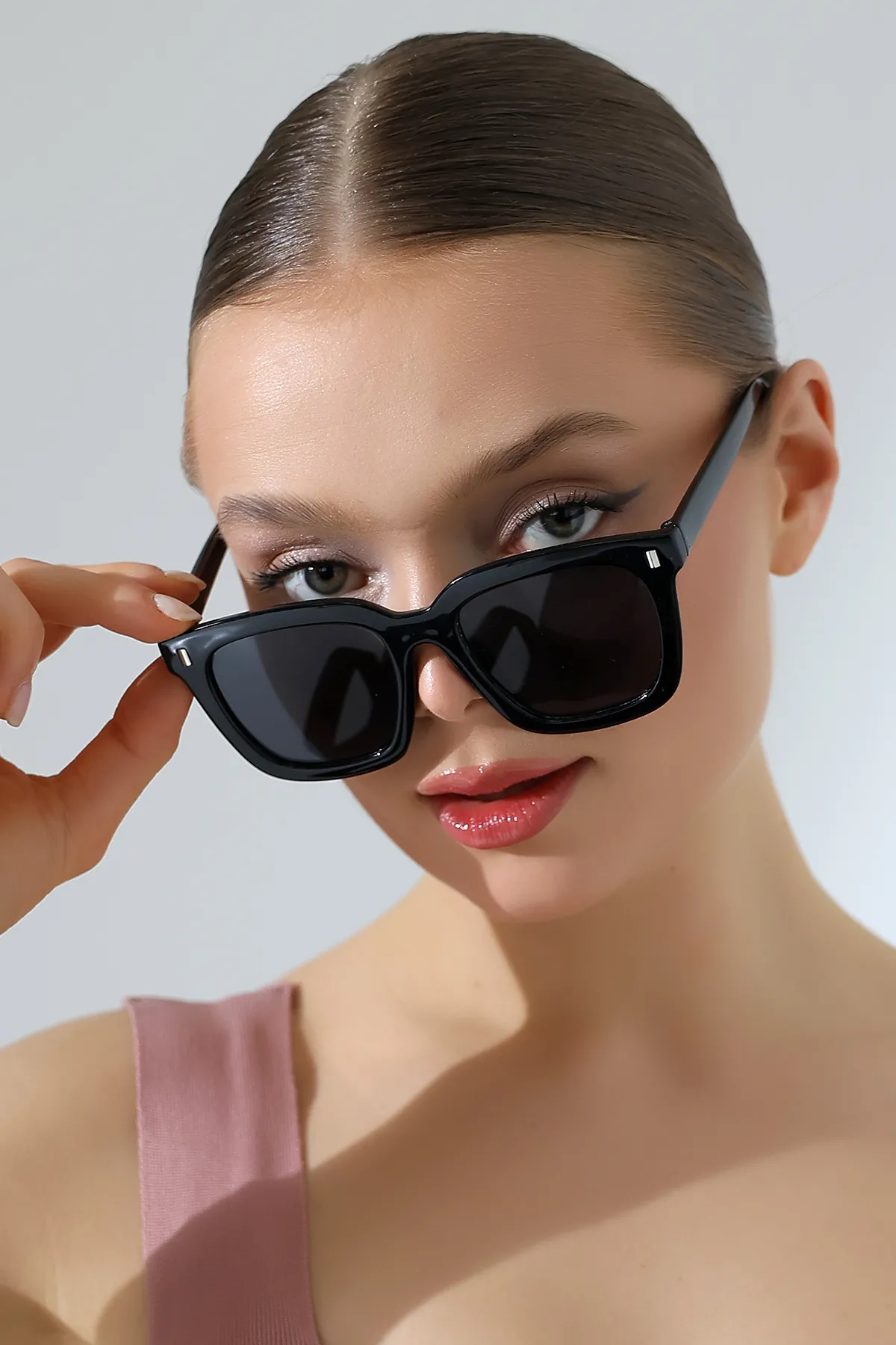 Kadın Siyah Kare Koyu Renk Cam Güneş Gözlüğü 23013 C2 K