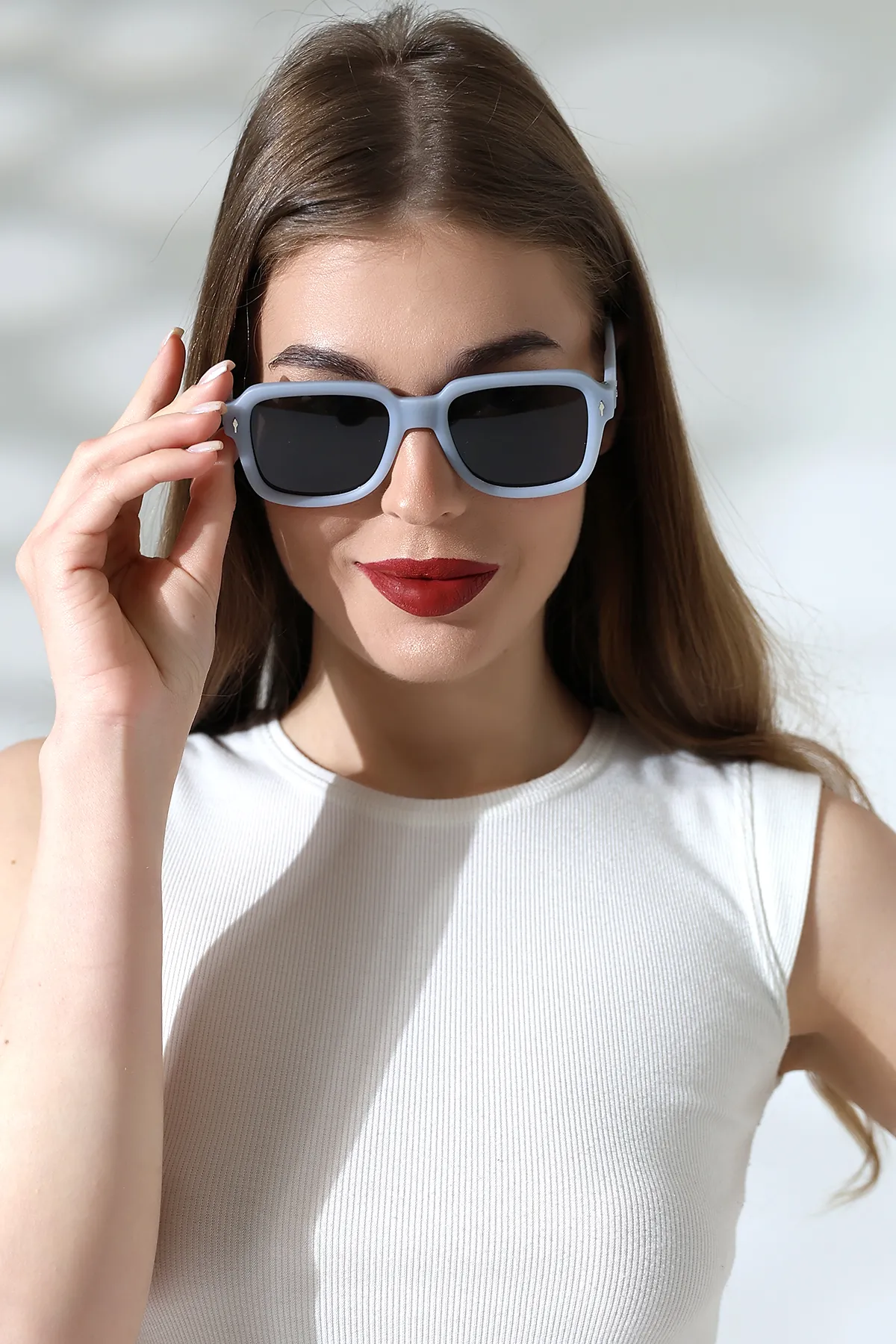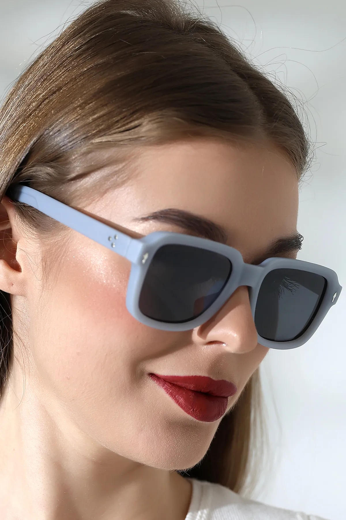 Kadın Kare Aksesuarlı Gri Mat Güneş Gözlüğü 23023 c15 m