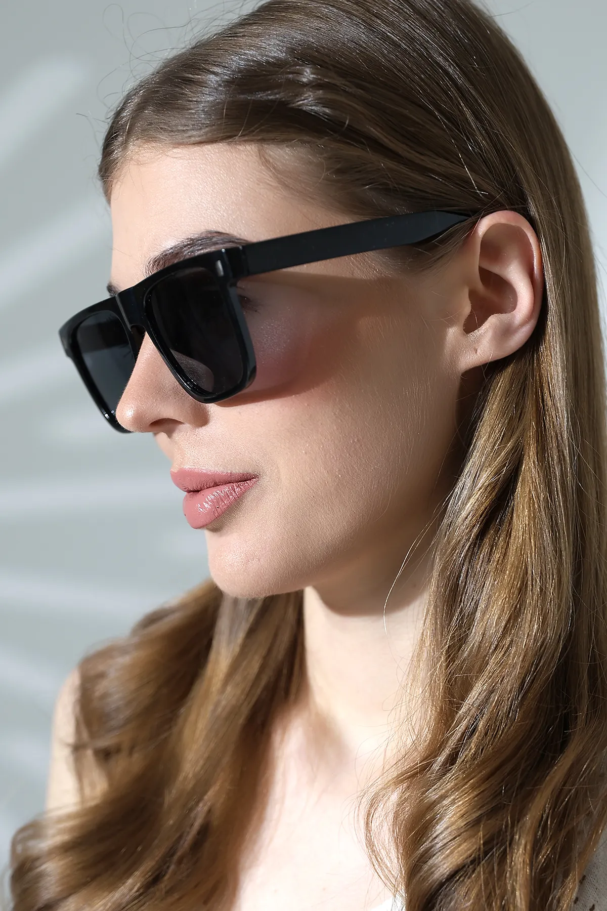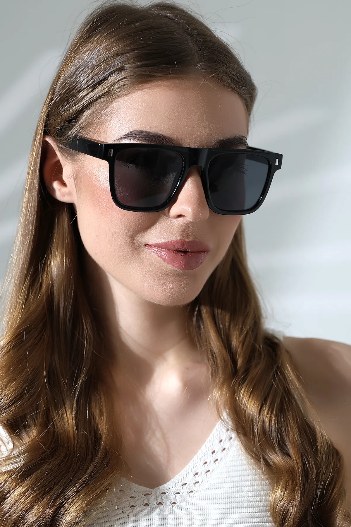 Kadın Kare Aksesuarlı Siyah Güneş Gözlüğü 23024 C2