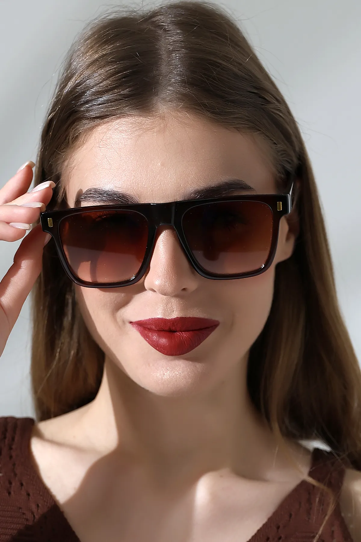 Kadın Kare Aksesuarlı Kahverengi Güneş Gözlüğü 23024 C3