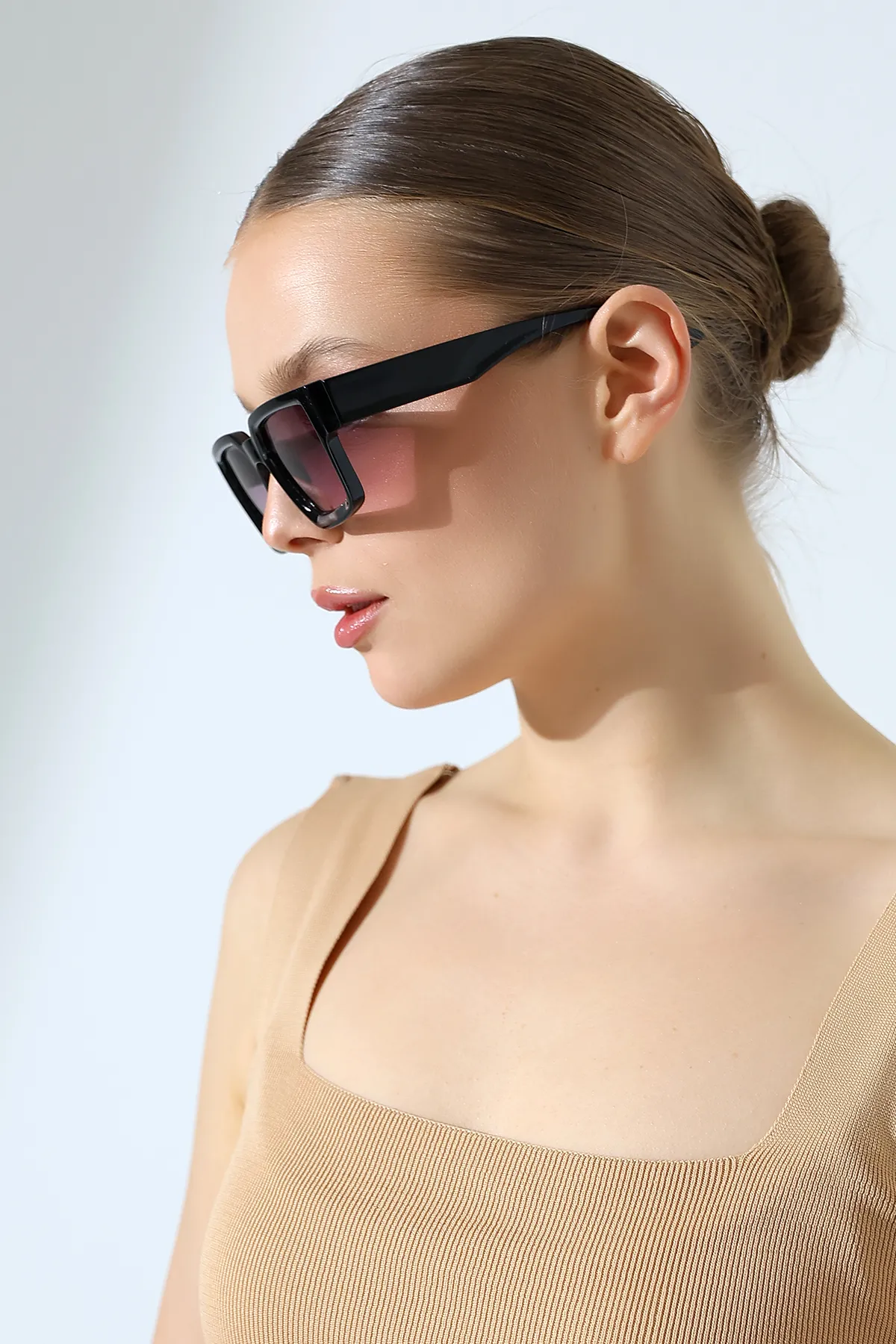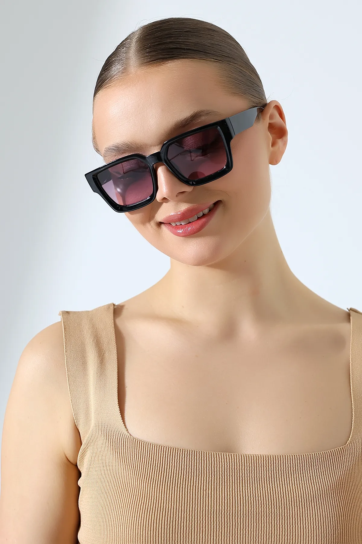 Kadın Kare Siyah Degrade Cam Güneş Gözlüğü 23022 c2 D
