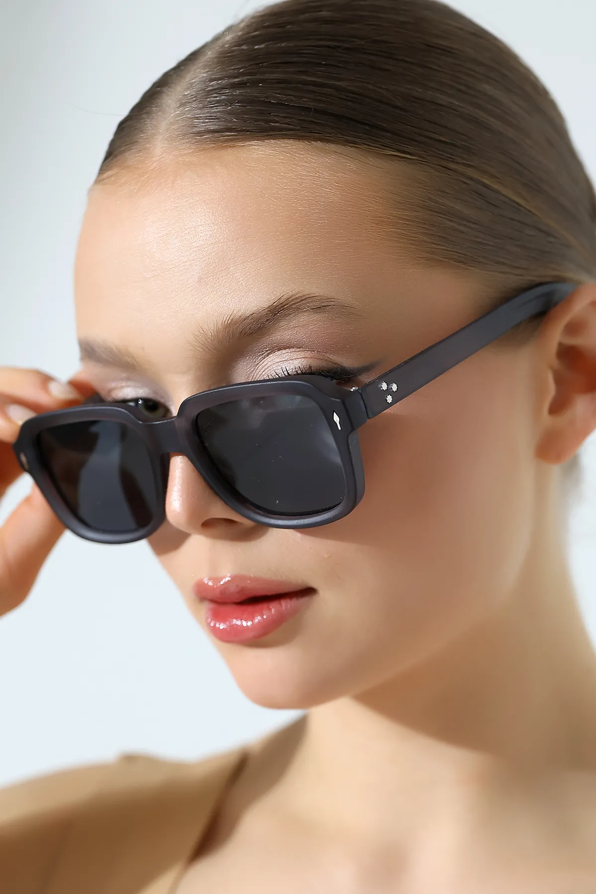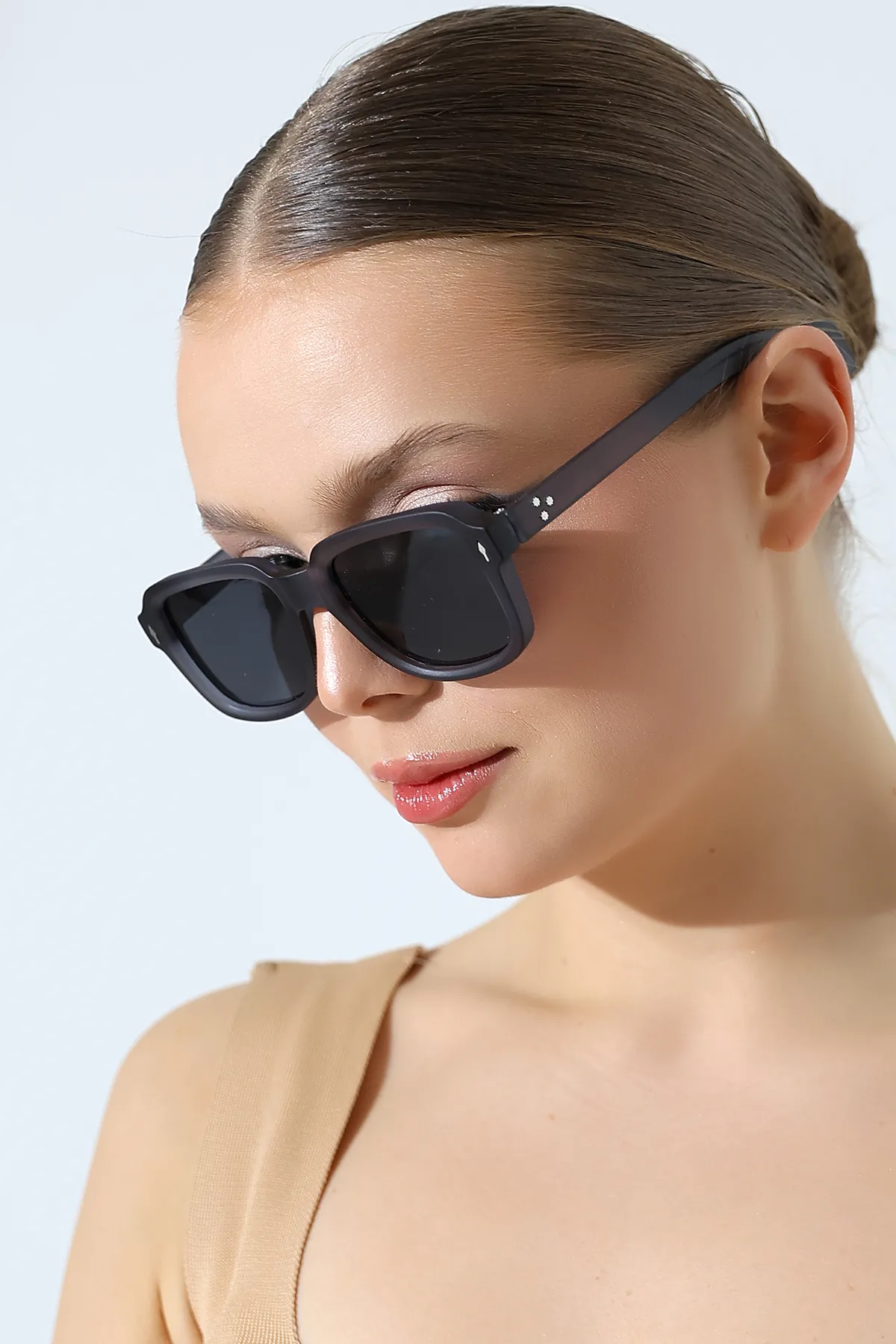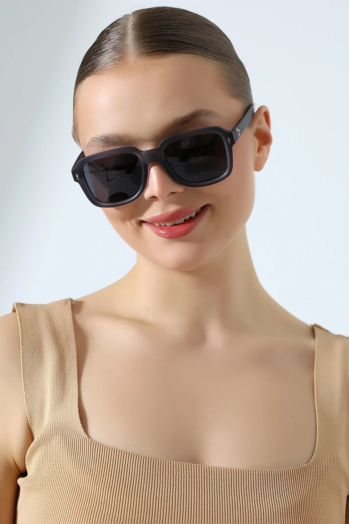 Kadın Kare Aksesuarlı Gri Mat Güneş Gözlüğü 23023 c13 m