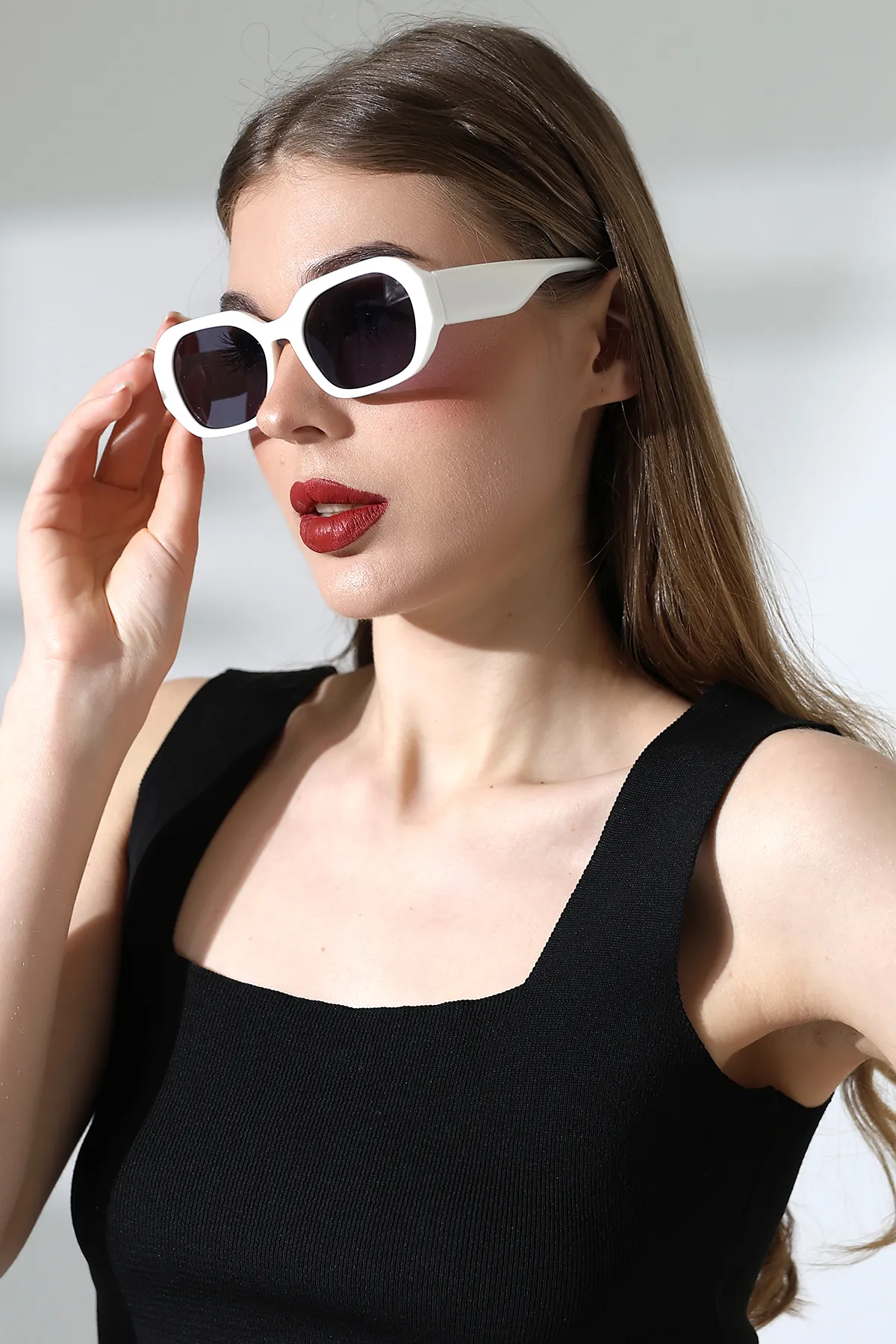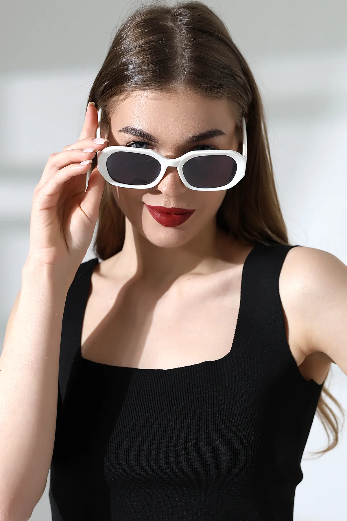 Kadın Dikdörtgen Beyaz Güneş Gözlüğü 23027 c20 m