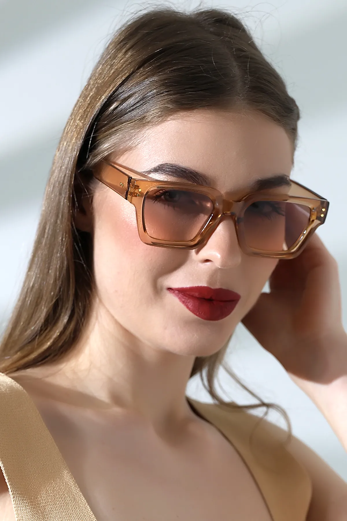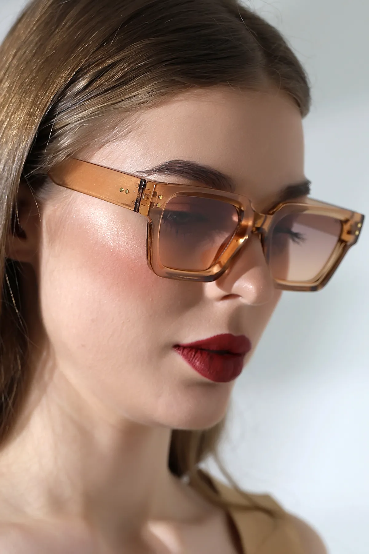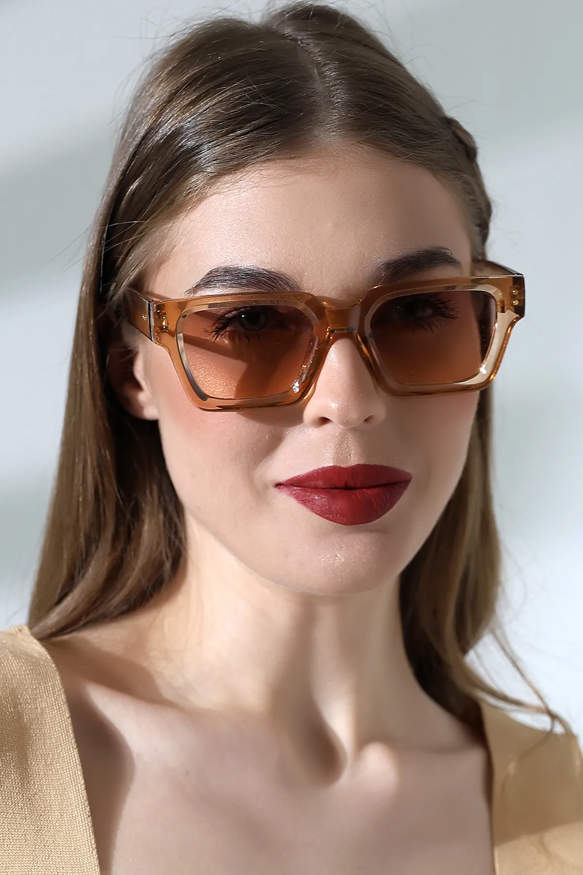 Kadın Kare Bal Rengi Aksesuarlı Güneş Gözlüğü 23029 c4